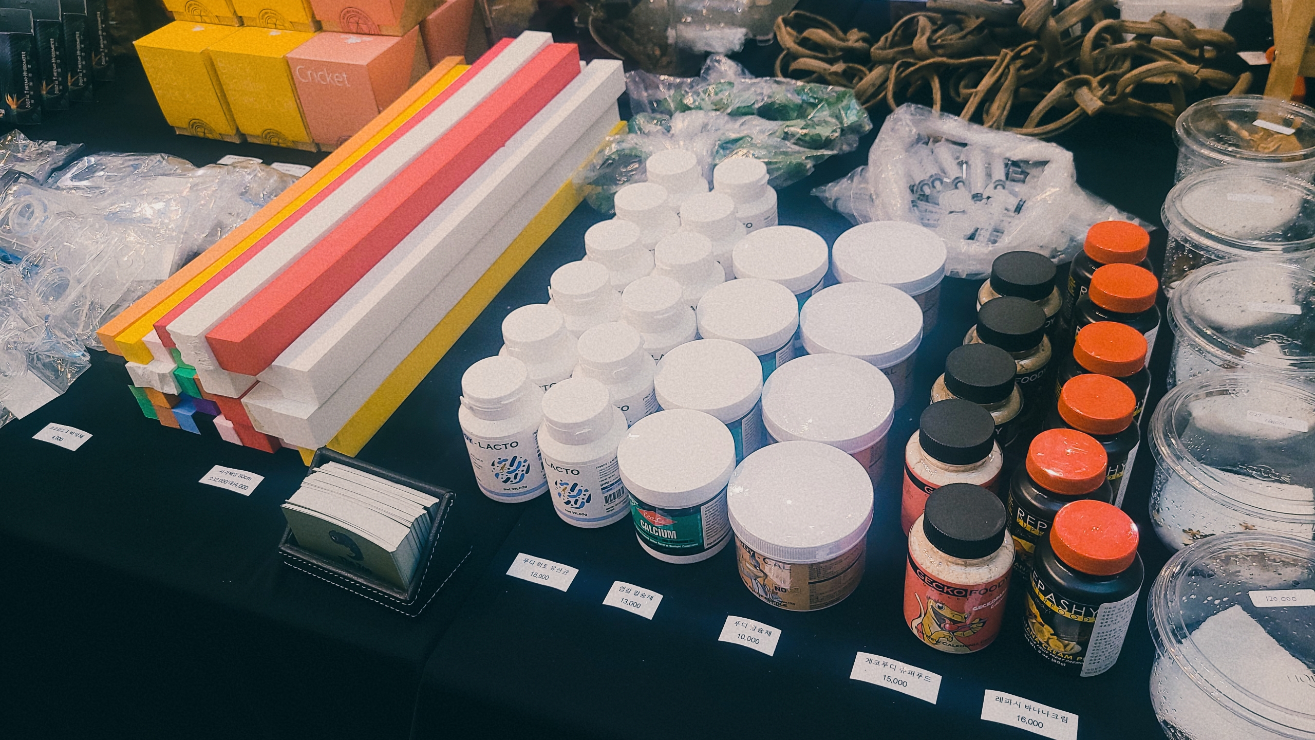 용품도 팔았는데 대부분 입문용 용품들이 많았어요 슈푸만 있어도 되서 영양제는 따로 안 사도되는데슈푸가 크레가 잘 먹으면 게코푸디나 레파시도 괜찮은데 혹시나 안 먹으면 먹이 줄 때 힘들어서 기호도 좋은 판게아 제품으로 따로 구입하는게 더 좋아보였어요