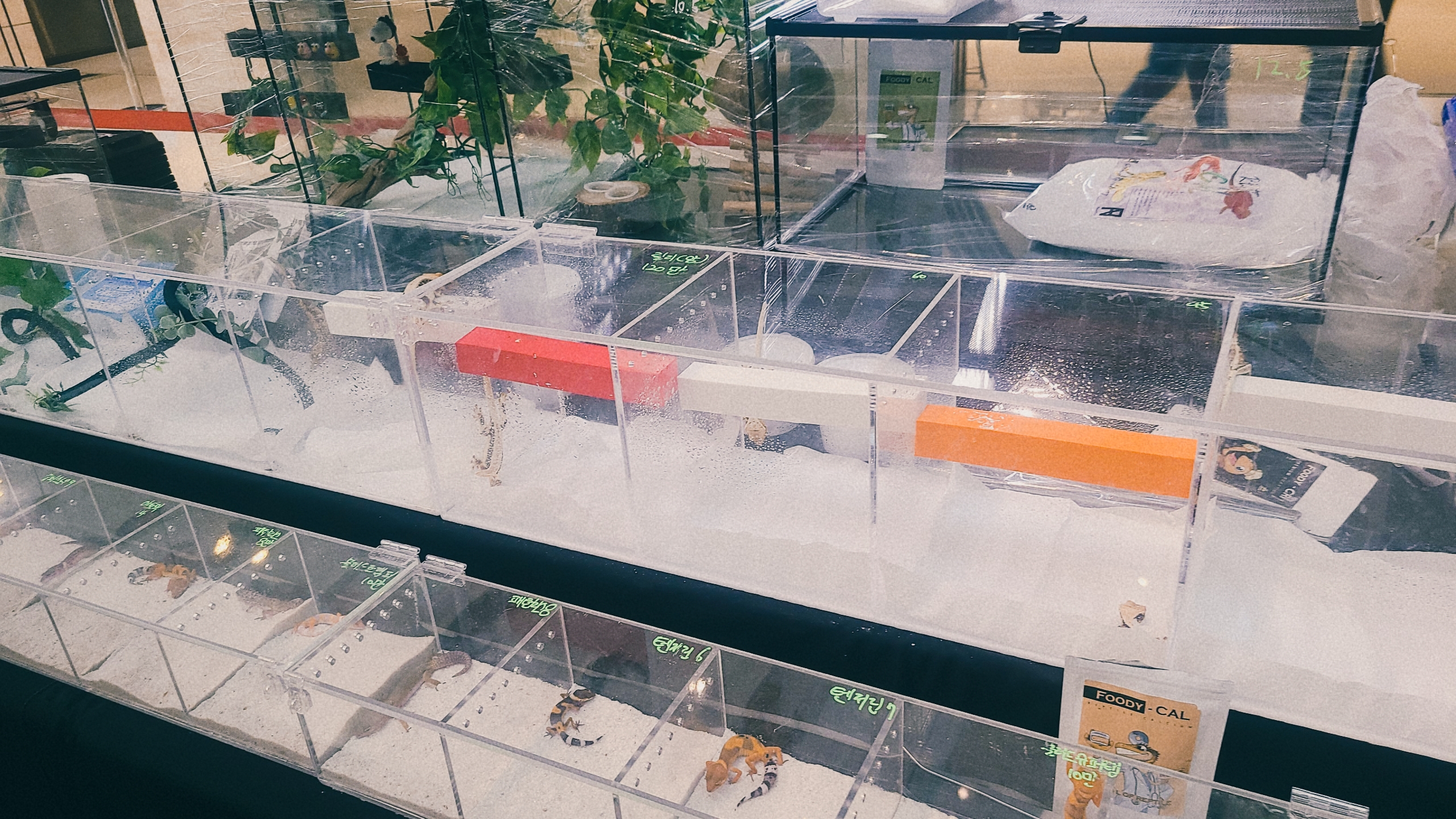 뱀도 있고 레오파드 게코도 있고 개구리도 있고